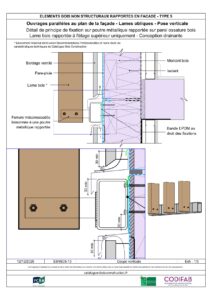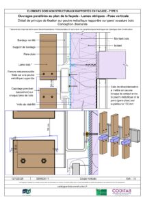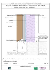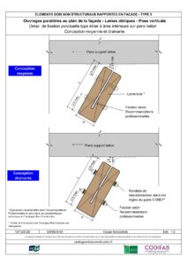 Éléments bois rapportés en façade / Ouvrages parallèles au plan de la façade / Lames obliques – pose verticale